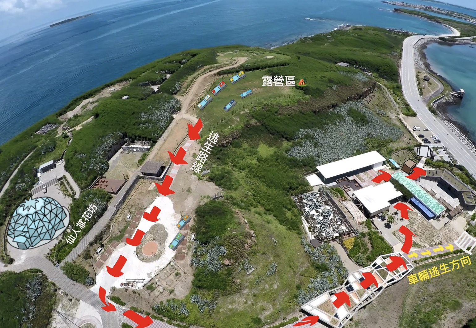 (2) 設置簡易棚架或標示牌,供遊客緊急集合與點名使用。
